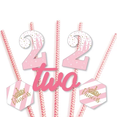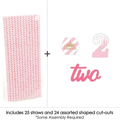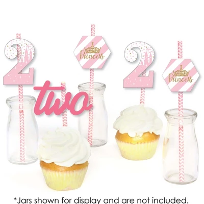 2nd Birthday Little Princess Crown Straw Decor INCLUDES 24 paper cut outs, 24 coordinating paper straws & 40 clear stickers for easy assembly. 2nd Birthday Little Princess Crown DIY party supplies are perfect for a birthday party. Princess Second Birthday Straw Decor party kit SIZE 8 # two 2″ wide x 2.75″ tall; 8 two (words) 3.5″ wide x 2″ tall; 8 hexagon 2.25″ wide x 2″ tall; and 24 chevron striped paper straws 7.75″ tall. EASY PARTY DECORATIONS: 2nd Birthday Little Princess Crown straw decor will add a touch of charm to your birthday party tables. Princess 2nd birthday straw decor will also look great at your beverage bar. Use these adorable princess second birthday party accessories as straws or swizzle sticks. The paper straws can also be cut in half and used as cupcake picks once the shaped cut out is attached. PREMIUM PARTY SUPPLIES: 2nd Birthday Little Princess Crown paper cut out straw decorations are professionally printed on heavy-duty card stock paper with a photo-like shine. They are individually inspected and carefully packaged by hand, along with coordinating paper straws. 2nd Birthday Little Princess Crown Straw Decor will require some easy assembly. Simply adhere the shaped cut outs to the straws using the included clear stickers. Get creative with your DIY birthday party decoration ideas! Please Note: Mason Jars shown for display purposes and are not included. Little Princess Crown – Striped Decorative Straws use a No-Mess Glitter Print: Our wrappers are designed with a printed image of glitter, eliminating glitter flake while maximizing bling effect!