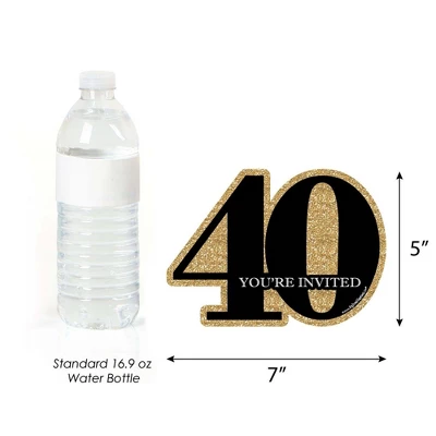 Adult 40th Birthday – Gold Fill-In the Blank Invitation Set INCLUDES 12 40th party invitations and 12 premium white envelopes. Adult 40th Birthday – Gold fill-in invitations are perfect for any event. The black and gold theme is great for a birthday party. 40th birthday party invitations SIZE 7 inches by 5 inches. The included envelopes measure 5 inches by 7 inches. The back of each Adult 40th Birthday – Gold birthday party invitation has space to add your party details: For: Date: Time: Place: Given By: RSVP: PREMIUM PARTY INVITATIONS: 40th party invitations are professionally printed on heavy-duty card stock paper with a photo-like shine. They are individually inspected, then carefully packaged with our exclusive squiggle flap envelopes, making this Chic 40th Birthday stationary set a must-have for any birthday party. MADE IN THE USA: Adult 40th Birthday – Gold – Birthday Party Invitations are designed and manufactured at our Wisconsin facility using materials that are Made in the USA. Adult 40th Birthday Fill-In Invitations use a No-Mess Glitter Print: Our invitations are designed with a printed image of glitter, eliminating glitter flake while maximizing bling effect!