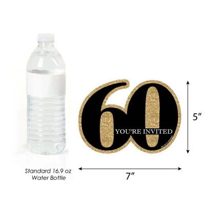Adult 60th Birthday – Gold Fill-In the Blank Invitation Set INCLUDES 12 sixtieth party invitations and 12 premium white envelopes. Adult 60th Birthday – Gold fill-in invitations are perfect for any event. The black and gold theme are great for a birthday party. Adult 60th Birthday – Gold party invitations SIZE 7 inches by 5 inches. The included envelopes measure 5 inches by 7 inches. The back of each Adult 60th Birthday – Gold party invitation has space to add your party details: For: Date: Time: Place: Given By: RSVP: PREMIUM PARTY INVITATIONS: 60th party invitations are professionally printed on heavy-duty card stock paper with a photo-like shine. They are individually inspected, then carefully packaged with our exclusive squiggle flap envelopes, making this Adult 60th Birthday – Gold stationary set a must-have for any birthday party. MADE IN THE USA: Adult 60th Birthday – Gold – Birthday Party Shaped Invitations are designed and manufactured at our Wisconsin facility using materials that are Made in the USA. Adult 60th Birthday Fill-In Invitations use a No-Mess Glitter Print: Our invitations are designed with a printed image of glitter, eliminating glitter flake while maximizing bling effect!