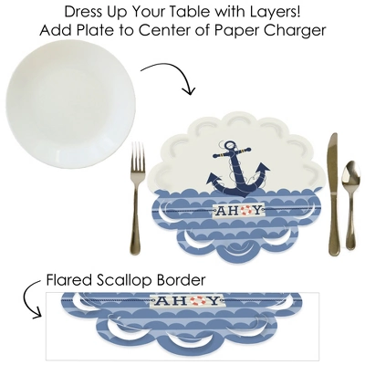 Ahoy – Nautical Paper Chargers INCLUDES set of 12 reversible round table decorations. Create an exciting look at your Birthday Party or Baby Shower when you use paper chargers to elevate your table setting and accent your dinnerware. Tablescape Accent: Ahoy – Nautical chargers will add a festive flare to your tablescape. Whether it’s a large feast gathering or a close-knit gathering with the family, paper chargers will add a splash of color and are a great alternative to paper doilies. Easy Decor: Dress up your table with layers! Add a plate to the center of paper chargers. Blue Anchor Themed paper charger is an easy solution for your table setting decor and perfect for complementing your tableware. The scallop border can be flared up for an elevated look and the backside can be used for an alternate look. High-Quality Supply: Ahoy – Nautical Paper Chargers are professionally printed double-sided on sturdy cardstock paper with a photo-like shine. Paper chargers measure 11.25” in diameter and are the perfect final touch to complete your Birthday Party or Baby Shower. Made In The USA: Ahoy – Nautical Paper Chargers are designed and manufactured at our Wisconsin facility using materials that are Made in the USA.