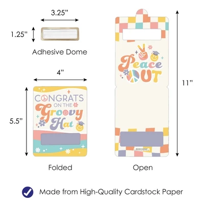 Assorted Graduation Funny Money Cards includes a set of 6 assorted money greeting cards and 6 plastic domes with adhesive backings. Funny money cards come with hilarious phrases that will make your recipient laugh and are perfect for a Graduation Party gift. Cheerful Gift: Delight your recipient with some cold, hard cash! Grad funny money card comes with space to write a personal message, making this a fun yet heartwarming way to show your loved one how much you care. Assorted Graduation cards measure 4 inches wide x 5 inches tall when folded and 11 inches tall when open. Plastic domes measure 3.25 inches Wide x 1.25 inches tall. Easy Assembly: To assemble your assorted grad cash holder card, peel back the adhesive backing on the plastic dome. Roll your cash and insert it into the dome. Next, attach the dome with money onto the inside of the card, placing it on the rectangular guide. Then, finish by folding the card and folding the bottom tab to the back of the card and inserting it into the slit to secure it shut. High-Quality Supply: Assorted Graduation DIY money holders are professionally printed double-sided on heavy-duty cardstock paper. Cards come with a photo-like shine on the outside. The inside will be matte, making it easy to handwrite your personal message. The clear plastic domes come in a lip balm pouch shape and are easy to use with a peel-and-stick adhesive backing. Assembled In The USA: Assorted Graduation Funny Money Cards are designed and manufactured at our Wisconsin facility using materials that are Made in the USA – Plastic Domes Made in China. Assorted Graduation Funny Money Cards uses a No-Mess Glitter Print: Our cards are designed with a printed image of glitter, eliminating glitter flake while maximizing bling effect!