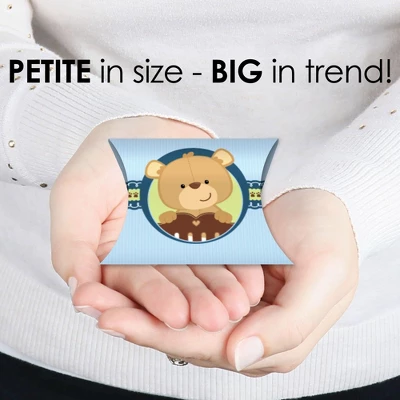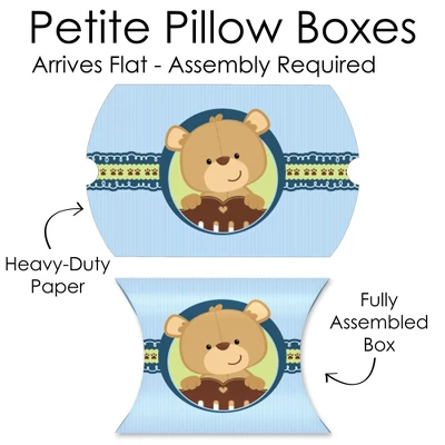Baby Boy Teddy Bear Petite Pillow Boxes INCLUDES 20 decorative boxes. Boxes arrive flat and require some easy assembly. Blue Bear petite gift boxes come in a mini size, perfect for a Baby Shower. FUN SIZE: Baby Boy Teddy Bear Petite Pillow Boxes are SIZE 4 inches long x 3 inches wide. When fully assembled, boxes have a 1.25-inch wide opening on each end with a depth of 2.75 inches. Great for all ages, these boxes are ideal for storing bite-sized candy, jewelry, and other miniature gifts. SUPER EASY ASSEMBLY: Blue Bear Petite Pillow Boxes require minimal assembly before use. Gently squeeze box open and fold one end, following numerical instructions inside each tab. Place gift inside or leave empty before folding the opposite end. PREMIUM GIFT BOXES: Baby Boy Teddy Bear Petite Pillow Boxes are professionally printed on heavy-duty paper with a photo-like shine. Boxes are hand-folded flat with ends left untouched for easy customer assembly. They are then individually inspected and carefully packaged. MADE IN THE USA: Baby Boy Teddy Bear Petite Pillow Boxes are designed and manufactured at our Wisconsin facility using materials that are Made in the USA.