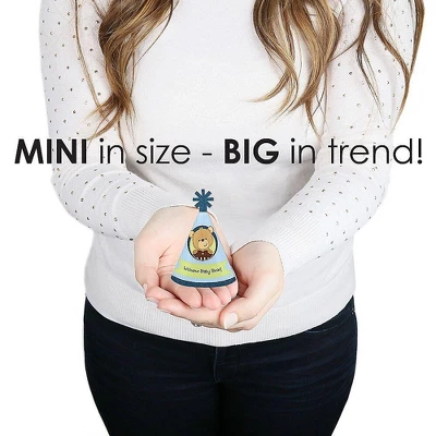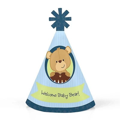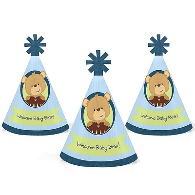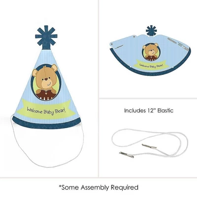 Baby Boy Teddy Bear Mini Party Hats INCLUDES 8 mini hats and 8 elastic chin straps. Mini baby shower hats will fit both children and adults. Some assembly required. 8 Baby Boy Teddy Bear party hats SIZE 4.75 inches tall and 3.25 inches in diameter at the base. The included elastic chin straps measure 12 inches long. These cute blue teddy bear party accessories feature a unique star cut-out decoration at the top and the printed saying “Welcome Baby Bear!”. FUN TEDDY BEAR PARTY ACCESSORIES: Baby Boy Teddy Bear mini party hats are perfect for your blue teddy bear party. This set of cute tiny party hats will help you take adorable baby shower photos. Best of all, mini party hats are perfectly sized for adults, kids, and even pets, so everyone can get in on the photo fun. Little party hats are sure to be enjoyed by all your friends and family! PREMIUM MINI PARTY HATS: Set of 8 Baby Boy Teddy Bear mini party hats are professionally printed on heavy-duty card stock paper with a photo-like shine. They are individually inspected, then carefully packaged. Baby Boy Teddy Bear mini cone baby shower hats will arrive flat. Easy assembly is required. Simply roll the party hat into a cone shape, slide the tab into the slot to secure cone shape, and then attach the elastic strap. MADE IN THE USA: Baby Boy Teddy Bear – Mini Cone Baby Shower Hats are designed and manufactured at our Wisconsin facility using materials that are Made in the USA.