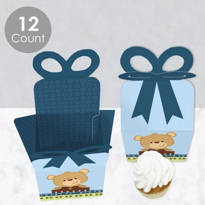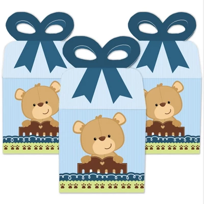 Bow Boxes INCLUDE: 12 Teddy Bear-themed square favor gift boxes. Each box SIZE measures 3.5 inches length x 3.5 inches width x 7 inches height. Bow boxes are ideal for small gifts and treats that are under 3.5 inches tall (height for storing items in closed box). When assembled and closed, each box creates a 3D paper bow-shaped top with a square bottom. CUTE GIFT BOXES: This small, closed favor box can be filled with homemade treats (fun cupcake box), party trinkets, or thank you gifts. At the party, have each guest fill their smiling brown Teddy Bear bow box with snacks from a candy buffet or use as a party loot box. Guests will have fun guessing what surprise each favor gift box contains. PREMIUM PARTY SUPPLY: Bow boxes are professionally printed and double-sided on heavy-duty cardstock paper, with a photo-like shine. They are hand-folded, individually inspected, and then carefully packaged. EASY ASSEMBLY: Teddy Bear bow boxes will arrive flat. Each bow box has crease lines and numbered tabs for easy folding. Finish the DIY assembly by interlocking top of box to create a three-dimensional bow. Packaging will include assembly instructions. MADE IN THE USA: The smiling brown Teddy Bear Baby Shower or Birthday Party bow boxes are designed and manufactured at our Wisconsin facility using materials that are Made in the USA.