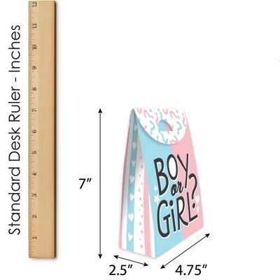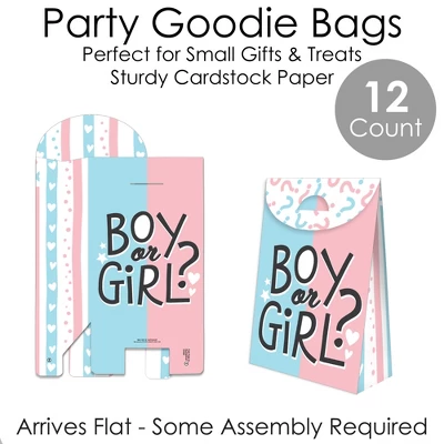 Baby Gender Reveal Party Goodie Bag INCLUDES 12 gift favor bags that are perfect for a Gender Reveal Party. Each bag SIZE measures 4.75” length x 2.5” wide x 7” tall. Party Goodie Bags are excellent for small gifts, treats, and other party favors. FANTASTIC FAVORS: Gather all the goodies to place inside these fun gift bags! Fill the party goodie bags with an assortment of gifts like bite-sized candies, small toys, trinkets, and thank you party favors! Delight your guests when you surprise them with these Baby Gender Reveal swag bags. EASY ASSEMBLY: Party goodie bags will arrive flat. Each favor bag includes creased lines and numbered tabs for easy folding. To close each bag, fold over the top flap and secure it by inserting the tab inside the slit. Packaging will also include assembly instructions. HIGH-QUALITY SUPPLY: Pink & Blue Party Goodie Bags are professionally printed double-sided on heavy-duty cardstock paper with a photo-like shine. They are individually inspected and then carefully packaged by hand. MADE IN THE USA: Baby Gender Reveal Party Goodie Bags are designed and manufactured at our Wisconsin facility using materials that are Made in the USA.
