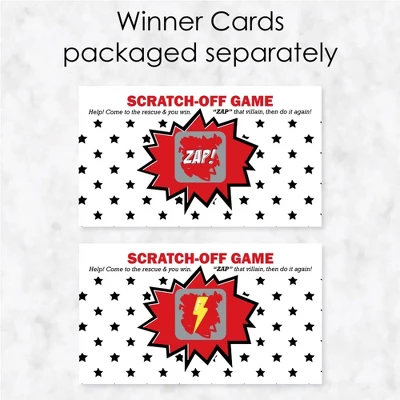 BAM! Superhero Scratch-Off Cards INCLUDES 22 baby shower or birthday party game cards: 20 “loser” cards and 2 “winner” cards. FUN PARTY GAME: BAM! Superhero scratch-off cards will be enjoyed by baby shower or birthday party guests of all ages. Each game card measures 2.75″ tall x 4.75″ wide. Winner and loser game cards are packaged separately so it is easy to pre-select the game winners if you choose. 3 WAYS TO PLAY: Simple – Greet guests as they arrive and hand them a scratch-off card. Quick – Display one scratch-off card at each place setting and have guests play before eating. Favorite – Give scratch-off cards out as mini prizes during other party games. The winning scratch off card(s) gets a grand prize. HIGH-QUALITY PARTY SUPPLIES: BAM! Superhero Scratch-Off Cards are professionally printed on heavy-duty cardstock paper with a photo-like shine. They are individually inspected and carefully packaged by hand, with winner cards and loser cards clearly marked. This fun baby shower or birthday party game will arrive ready to use at your party. MADE IN THE USA: BAM! Superhero – Baby Shower or Birthday Party Game Scratch Off Cards are designed and manufactured at our Wisconsin facility using materials that are Made in the USA.