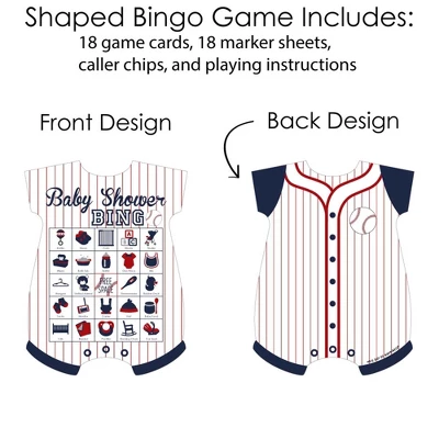 Batter Up – Baseball – Shaped Picture Bingo Cards and Markers INCLUDES: 18 game cards, 18 perforated marker sheets, 1 perforated call sheet, and game instructions. MUST-HAVE PARTY SUPPLY: Bingo is an easy and classic baby shower game that everyone will have fun playing. Batter Up – Baseball – Shaped Picture Bingo Cards and Markers give this classic game a fresh look with baby bodysuit-shaped playing cards and baby related pictures instead of numbers. HOW TO PLAY: Begin play by the designated bingo leader pulling a caller chip from the bowl. Each guest covers the called picture on their card with square marker. Continue until a guest has covered a row of pictures in any direction – vertically, horizontally, or diagonally and calls out “BINGO!”. HIGH-QUALITY: Batter Up – Baseball Picture Shaped Bingo Cards and Markers are professionally printed and double-sided on sturdy cardstock paper. They are individually inspected and carefully packaged by hand. Each baby bodysuit-shaped card measures 5.25″ Wide x 6.75″ Tall, perforated marker sheets measure 2.75″ Wide x 5″ Tall and individual markers measure 0.75″ Wide x 0.75″ Tall. MADE IN THE USA: Batter Up – Baseball – Shaped Bingo Cards and Markers are designed and manufactured at our Wisconsin facility using materials that are Made in the USA.