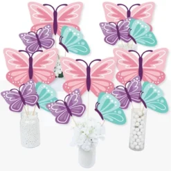 Beautiful Butterfly Centerpiece Sticks INCLUDES 15 Butterfly table toppers in three different shapes, 15 sticks, and stickers for easy assembly. Pastel Butterflies party table decorations are perfect for a Baby Shower or Birthday Party. Beautiful Butterfly Party Centerpiece Sticks SIZE 5 – Pink Butterfly table toppers (10.75β wide x 7.75β tall), 5 – Teal Butterfly table toppers (6.5β wide x 5β tall), and 5 – Purple Butterfly table toppers (7β wide x 5β tall). The unique design and variety of pieces makes this table decoration kit an impressive addition to any Butterfly themed party. EASY PARTY DECOR: Beautiful Butterfly table decorations can be used as centerpieces when attached to the included sticks and inserted into vases or floral arrangements. They easily accent your Baby Shower or Birthday Party candy buffet when you add them to apothecary jars. Table toppers are also a great addition to any photo booth. The large, shaped cut outs will make your party pics instantly shareable. Floral Butterflies party centerpiece sticks are sure to make a statement however you choose to use them! PREMIUM PARTY SUPPLIES: Beautiful Butterfly party table toppers are professionally printed on heavy-duty cardstock paper with a photo-like shine. They are individually inspected and carefully packaged by hand with sticks and stickers for easy assembly. Get creative with your DIY party ideas! MADE IN THE USA: Beautiful Butterfly – Party Centerpiece Sticks are designed and manufactured at our Wisconsin facility using materials that are Made in America.