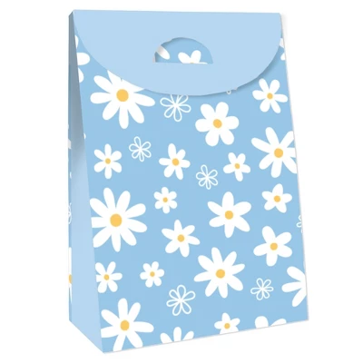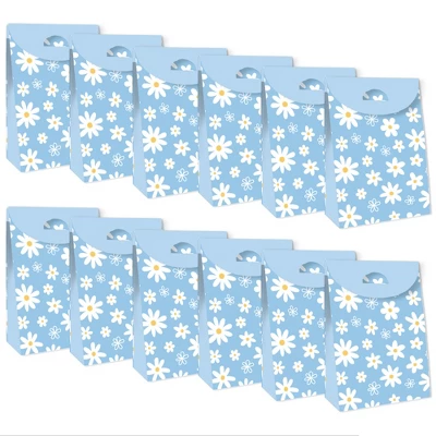 Big Dot Of Happiness Blue Daisy Flowers – Floral Gift Favor Bags – Party Goodie Boxes – Set Of 12
