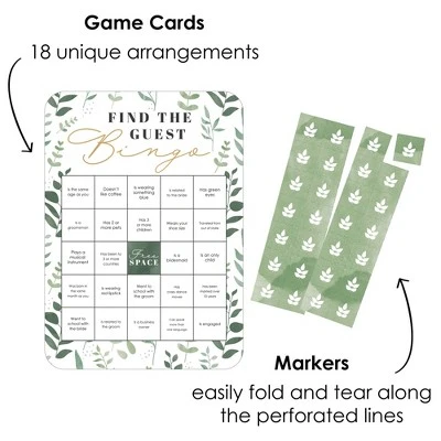 Boho Botanical Bride Bingo Cards and Markers INCLUDES 18 game cards, 18 perforated marker sheets, 1 perforated call sheet, and game instructions. MUST-HAVE PARTY SUPPLY: Bingo is an easy and classic Boho Botanical Bride game that everyone will have fun playing. Bridal Shower or Wedding Party Bingo Cards and Markers give this classic game a fresh look with Boho Botanical Bride playing cards with Wedding Party-related words instead of numbers. HOW TO PLAY: Play traditional bingo rules or play find the guest bingo. Find the guest bingo is played by observing each party guest and marking the space when you find a guest who has a corresponding life event or fact that matches a bingo space on your card. Begin traditional play by the designated bingo leader pulling a caller chip from the bowl. Each guest covers the called word on their card with square marker. Continue until a guest has covered a row in any direction – vertically, horizontally, or diagonally and calls out “BINGO!”. HIGH-QUALITY: Boho Botanical Bride Bingo Cards and Markers are professionally printed and double-sided on sturdy cardstock paper. They are individually inspected and carefully packaged by hand. Each card measures 5” Wide x 7” Tall, perforated marker sheets measure 2.75” Wide x 5” Tall and individual markers measure 0.75” Wide x 0.75” Tall. MADE IN THE USA: Boho Botanical Bride Bingo Game is designed and manufactured at our Wisconsin facility using materials that are Made in the USA.