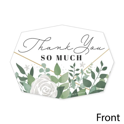 Shaped Thank You Cards Set INCLUDES 12 Boho Botanical Baby & Bridal Shower or Wedding thank you cards and 12 premium white envelopes. Greenery Shaped Thank You Cards are the perfect end to any event. Greenery party thank you note cards SIZE 7 inches by 5 inches. The included envelopes measure to fit 7 inches by 5 inches cards. The back of each Boho Botanical Baby & Bridal Shower or Wedding thank you has space to write a personal message of thanks. PREMIUM PARTY THANK YOU CARDS: Boho Botanical party thank you cards are professionally printed on heavy-duty cardstock paper with a photo-like shine. They are individually inspected, then carefully packaged with our exclusive squiggle flap envelopes, making this Boho Botanical stationery set a must-have for any Baby & Bridal Shower or Wedding. MADE IN THE USA: Boho Botanical Party Thank You Cards are designed and manufactured at our Wisconsin facility using materials that are Made in America.