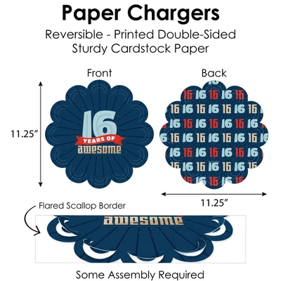 Big Dot Of Happiness Boy 16th Birthday – Sweet Sixteen Birthday Party Paper Charger & Table Decorations Chargerific Kit For 8