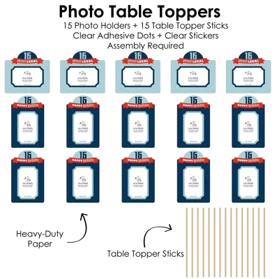 Boy 16th Birthday Photo Table Toppers INCLUDE: 15 sturdy and professionally printed paper photo holders and 15 table topper sticks. Each photo holder has pre-cut tabs to display your 4×6 photos vertically or horizontally. Clear stickers are included to easily assemble the stick to photo holder. DIY CENTERPIECE STICKS: Create picture-perfect centerpieces for your birthday party with Boy 16th Birthday Photo Table Toppers. Each photo holder has 4 pre-cut slits to tab your 4×6 photos in place. (Note: Your photo will tab through back design of photo holder.) Then attach one table topper stick to one completed photo holder piece with the included clear stickers. EASY BIRTHDAY DECOR: Boy 16th Birthday Photo Table Topper decorations can be used as centerpieces when attached to the included sticks and inserted into vases or floral arrangements. They easily accent your birthday party candy buffet when you add them to apothecary jars. Photo Table Toppers are a great addition to any birthday party and a fun way to proudly show off the guest of honor. PREMIUM PARTY DECORATION: Boy 16th Birthday Photo Table Toppers are professionally printed double-sided on heavy-duty cardstock paper. This set of paper picture frames includes 10 count vertical photo display SIZE 5.5 inches wide x 8.75 inches tall and 5 count horizontal photo display SIZE 7.5 inches wide x 6.75 inches tall. Each photo holder fits your own 4×6 photo size. The included 15 table topper sticks each SIZE 12 inches tall. Do-it-yourself assembly required. MADE IN THE USA: Boy 16th Birthday Photo Table Toppers are designed and manufactured at our Wisconsin facility using materials that are Made in the USA.