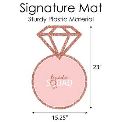 Signature Mat Alternative Guest Book INCLUDES 1 Bride Squad ring-shaped signature mat. There isn’t a better way to display your loved one’s wishes from a for Rose gold bridal shower or bachelorette party than with a large signature mat sign. Bride Squad signature mat SIZE 23 inches wide by 15.25 inches height. Bride Squad signature mat is professionally printed on thick, sturdy, white plastic. It is then professionally cut in a ring shape with a white edge for a finished look. UNIQUE PARTY SUPPLIES: Bride Squad signature mat is a fun alternative to a traditional for Rose gold bridal shower or bachelorette party guest book. Simply display your Bride Squad signature mat alternative at the door of your party. As your guests arrive, they can write a special note, witty inside joke, or advice for the guest of honor. DISPLAY IDEAS: Bride Squad for Rose gold bridal shower or bachelorette party signature mat alternative is a lasting memory of the guest of honor’s special day. Once your friends and family have added their names and special message to the signature mat, display for everyone to see as they leave the party. Afterward, present this alternative guest book to your Guest of Honor as a memento of their amazing for Rose gold bridal shower or bachelorette party. MADE IN THE USA: Bride Squad Signature Mat Alternative Guest Book is designed and manufactured at our Wisconsin facility using materials that are Made in the USA. Bride Squad signature mat use a No-Mess Glitter Print: Our signature mat alternatives are designed with a printed image of glitter, eliminating glitter flake while maximizing bling effect!