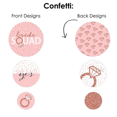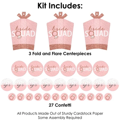 Bride Squad Terrific Table Centerpiece Kit INCLUDES 27 paper confetti and 3 fold and flare centerpieces that will look amazing at your Bridal Shower or Bachelorette Party. Make a statement at your celebration with this easy DIY table kit! CIRCLE CONFETTI includes 27 cut-out circle shapes in three different sizes – 12 small circles size 2.75 in, 9 medium circles size 4.25 in, and 6 large circles size 5.5 in. Scatter the Rose Gold themed confetti across your dessert or buffet table for an impressive addition to your decorations. FOLD AND FLARE CENTERPIECES includes 3 table decorations measure 5 inches wide (front/back) x 3 inches wide (sides) x 10.5 inches tall. These paper table decors require easy folding to flare out each centerpiece for your desired look. Simply, use a flat surface to fold along the scored creases to stand the centerpiece upright and be able to balance on its own. Both Fold and Flare Centerpieces & Confetti Are Professionally Printed Double-Sided on Sturdy Cardstock Paper MADE IN THE USA: Bride Squad Terrific Table Centerpiece Kit is designed and manufactured at our Wisconsin facility using materials that are Made in the USA. Bride Squad Terrific Table Centerpiece Kit uses a No-Mess Glitter Print: Our centerpieces and confetti are designed with a printed image of glitter, eliminating glitter flake while maximizing bling effect!