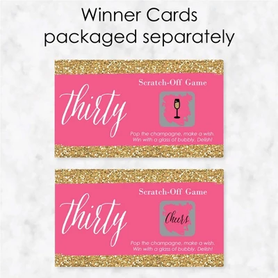 Chic 30th Birthday – Pink and Gold Scratch-Off Cards INCLUDES 22 birthday party game cards: 20 “loser” cards and 2 “winner” cards. FUN PARTY GAME: Chic 30th Birthday – Pink and Gold scratch-off cards will be enjoyed by birthday party guests of all ages. Each game card measures 2.75″ tall x 4.75″ wide. Winner and loser game cards are packaged separately so it is easy to pre-select the game winners if you choose. 3 WAYS TO PLAY: Simple – Greet guests as they arrive and hand them a scratch-off card. Quick – Display one scratch-off card at each place setting and have guests play before eating. Favorite – Give scratch-off cards out as mini prizes during other party games. The winning scratch off card(s) gets a grand prize. HIGH-QUALITY PARTY SUPPLIES: Chic 30th Birthday – Pink and Gold Scratch-Off Cards are professionally printed on heavy-duty cardstock paper with a photo-like shine. They are individually inspected and carefully packaged by hand, with winner cards and loser cards clearly marked. This fun birthday party game will arrive ready to use at your party. MADE IN THE USA: Chic 30th Birthday – Pink, Black and Gold – Birthday Party Game Scratch Off Cards are designed and manufactured at our Wisconsin facility using materials that are Made in the USA. Chic 30th Birthday – Pink and Gold scratch off game cards use a No-Mess Glitter Print: Our games are designed with a printed image of glitter, eliminating glitter flake while maximizing bling effect!