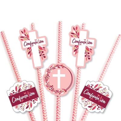 Confirmation Pink Elegant Cross Straw Decor INCLUDES 24 cross paper cut outs, 24 coordinating paper straws & 40 clear stickers for easy assembly. Confirmation Pink Elegant Cross DIY party supplies are perfect for a girl religious party. Girl Religious Straw Decor party kit SIZE 8 circle 2.25″ wide x 2.5″ tall; 8 cross 2″ wide x 3″ tall; 8 Confirmation 2″ wide x 2.25″ tall and 24 chevron striped paper straws 7.75″ tall. EASY PARTY DECORATIONS: Confirmation Pink Elegant Cross straw decor will add a touch of style to your girl religious party tables. Cross straw decor will also look great at your beverage bar. Use these adorable baby dedication party accessories as straws or swizzle sticks. The paper straws can also be cut in half and used as cupcake picks once the shaped cut out is attached. PREMIUM PARTY SUPPLIES: Confirmation Pink Elegant Cross paper cut out straw decorations are professionally printed on heavy-duty card stock paper with a photo-like shine. They are individually inspected and carefully packaged by hand, along with coordinating paper straws. Confirmation Pink Elegant Cross Straw Decor will require some easy assembly. Simply adhere the shaped cut outs to the straws using the included clear stickers. Get creative with your DIY girl religious party decoration ideas! Please Note: Mason Jars shown for display purposes and are not included.