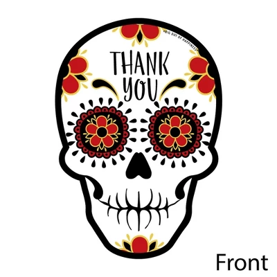 Shaped Thank You Cards Set INCLUDES 12 Dia de Los Muertos thank you cards and 12 premium white envelopes. Sugar Skull Shaped Thank You Cards are the perfect end to any event. Sugar Skull party thank you note cards SIZE 5 inches by 7 inches. The included envelopes measure to fit 5 inches by 7 inches cards. The back of each Day of The Dead Sugar Skull thank you has space to write a personal message of thanks. PREMIUM PARTY THANK YOU CARDS: Day of The Dead party thank you cards are professionally printed on heavy-duty cardstock paper with a photo-like shine. They are individually inspected, then carefully packaged with our exclusive squiggle flap envelopes, making this Day of The Dead stationary set a must-have for any Sugar Skull party. MADE IN THE USA: Day of The Dead – Sugar Skull Shaped Thank You Cards are designed and manufactured at our Wisconsin facility using materials that are Made in America.
