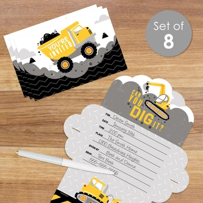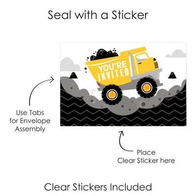 Dig It – Construction Party Zone Fold and Send Invitations includes a set of 8 Baby Shower or Birthday Party invitations. This all-in-one set of invites can be folded into an envelope and comes with clear stickers for secure delivery. Splendid Surprise: Excite your partygoers with these unique and charming invites that turn into envelopes. Dump Truck invitations include fill-in-the-blank space to add your party details. Once assembled, you can directly hand the invites to your recipients or write out the address information on the backside and send your invite via snail mail. Easy Assembly: To transform your invite into an envelope, begin by folding the sides inward. Next, fold and attach the bottom flap by inserting the tabs into the slots of the side flaps. Finally, fold the top flap over and insert its tabs into the slots. Seal your envelope shut using a clear sticker. Practice assembling using the instruction card included. Premium Party Supply: Dig It – Construction Party Zone party invitations are professionally printed double-sided on quality cardstock paper with a photo-like shine. When folded, invite cards measure 6.25 inches wide x 4.25 inches tall, and when open, cards measure 9.5 inches wide x 11.75 inches tall. Made In The USA: Dump Truck Fold and Send Invitations are designed and manufactured at our Wisconsin facility using materials that are Made in the USA.