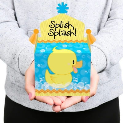 Gable Boxes INCLUDE: 12 Ducky Duck-themed goodie party favor boxes. Each box SIZE measures 4.25 inches length x 3 inches width x 7.75 inches height. Gable favor boxes are ideal for small gifts and treats that are under 3.5 inches tall (height for storing items in closed box). FUN PARTY FAVORS: Use gable boxes for a unique party gift at any celebration party. This small, closed favor box can be filled with baked goodies, party trinkets, or thank you gifts. Party guests will have fun with the mystery of what each party loot box will contain. PREMIUM PARTY SUPPLY: Gable treat boxes are professionally printed and double-sided on heavy-duty cardstock paper, with a photo-like shine. They are hand-folded, individually inspected, and then carefully packaged. SIMPLE ASSEMBLY: Ducky Duck gable boxes will arrive flat. Allow time for the required assembly of each box. Gable boxes have crease lines and numbered tabs for easy folding. Packaging will include assembly instructions. MADE IN THE USA: Ducky Duck Baby Shower or Birthday Party goodie gable boxes are designed and manufactured at our Wisconsin facility using materials that are Made in the USA.