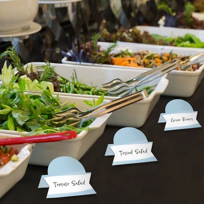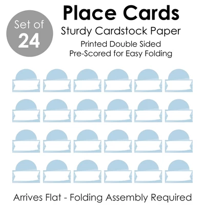 Dusty Blue Elegantly Simple Place Cards INCLUDES 24 individual cards that measure 3.5” wide x 2.5” tall when assembled. Easy to use, these tabletop accents are perfect to use at your next Baby or Bridal Shower, Anniversary, Retirement, or Birthday Party. VERSATILE IN USE: Whether it’s a small party or large gathering, the Light Powder Blue Place Cards can be used in a variety of ways. Handwrite words in the blank space and then set them on the buffet table, as part of a place setting, or consider using them for an icebreaker activity. EYE-CATCHING DESIGN: Featuring crisp graphics with an innovative cut design, Dusty Blue Elegantly Simple Place Cards will easily draw in attention without taking up too much space. To assemble, push back the top outer edge, revealing the half-circle top. Fold along the pre-scored line in the center to create the tent shape, and then display! HIGH-QUALITY: Light Powder Blue Place Cards are professionally printed double-sided on sturdy cardstock paper with a photo-like shine. They are individually inspected and carefully packaged by hand. Place Cards will arrive flat with some folding assembly required. MADE IN THE USA: Dusty Blue Elegantly Simple Place Cards are designed and manufactured at our Wisconsin facility using materials that are Made in the USA.