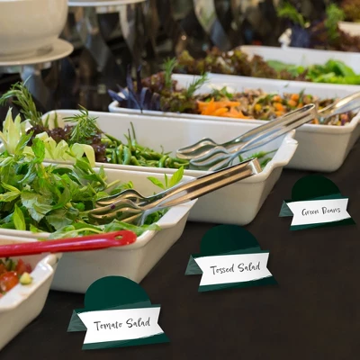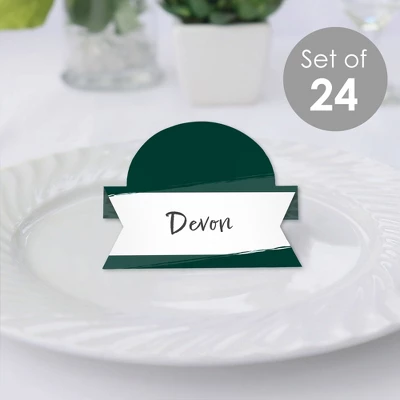 Emerald Elegantly Simple Place Cards INCLUDES 24 individual cards that measure 3.5β wide x 2.5β tall when assembled. Easy to use, these tabletop accents are perfect to use at your next Baby or Bridal Shower, Anniversary, Retirement, or Birthday Party. VERSATILE IN USE: Whether itβs a small party or large gathering, the Green Place Cards can be used in a variety of ways. Handwrite words in the blank space and then set them on the buffet table, as part of a place setting, or consider using them for an icebreaker activity. EYE-CATCHING DESIGN: Featuring crisp graphics with an innovative cut design, Emerald Elegantly Simple Place Cards will easily draw in attention without taking up too much space. To assemble, push back the top outer edge, revealing the half-circle top. Fold along the pre-scored line in the center to create the tent shape, and then display! HIGH-QUALITY: Green Place Cards are professionally printed double-sided on sturdy cardstock paper with a photo-like shine. They are individually inspected and carefully packaged by hand. Place Cards will arrive flat with some folding assembly required. MADE IN THE USA: Emerald Elegantly Simple Place Cards are designed and manufactured at our Wisconsin facility using materials that are Made in the USA.