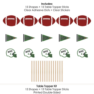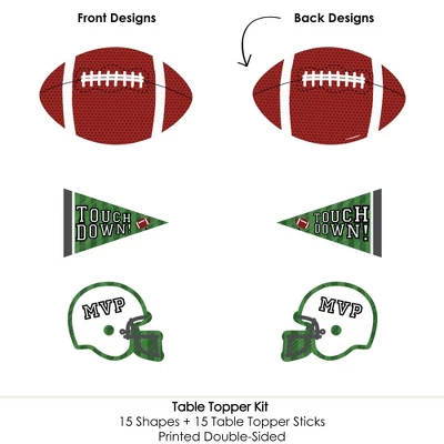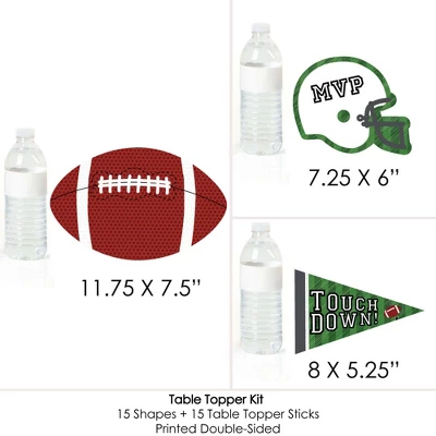 - Table Topper Designs Read: “Touch Down!” and “MVP”
