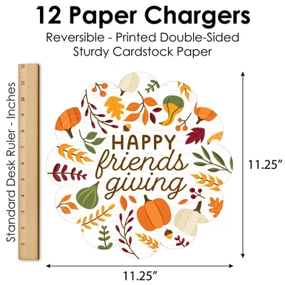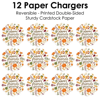 - Professionally Printed Double-Sided On Sturdy Cardstock Paper. Charger Design Reads: “Happy Friends Giving”