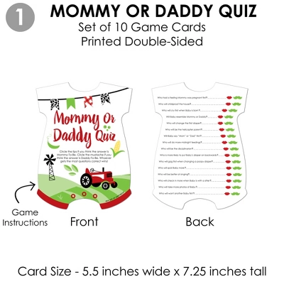 - Games Included: Who Knows Mommy Best, Mommy or Daddy Quiz, What’s in Your Purse and Oh Baby