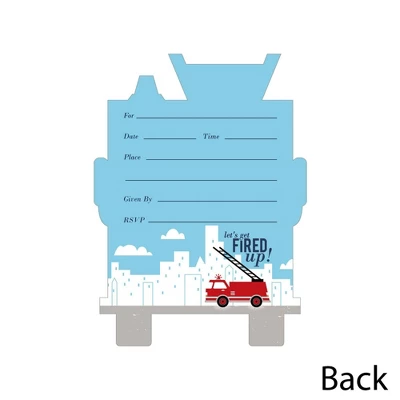 Fired Up Fire Truck Fill-In the Blank Invitation Set INCLUDES 12 firetruck party invitations and 12 premium white envelopes. Fired Up Fire Truck fill-in invitation is perfect for any event. The firefighter theme is great for a baby shower or birthday party. Firetruck party invitations SIZE 5 inches by 7 inches. The included envelopes measure 5 inches by 7 inches. The back of each Fired Up Fire Truck baby shower or birthday party invitation has space to add your party details: For: Date: Time: Place: Given By: RSVP: PREMIUM PARTY INVITATIONS: Fire truck party invitation is professionally printed on heavy-duty card stock paper with a photo-like shine. They are individually inspected, then carefully packaged with our exclusive squiggle flap envelopes, making this Fired Up Fire Truck stationary set a must-have for any baby shower or birthday party. MADE IN THE USA: Fired Up Fire Truck – Baby Shower or Birthday Party Invitations are designed and manufactured at our Wisconsin facility using materials that are Made in the USA.