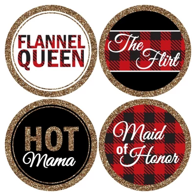 Buffalo Plaid Bachelorette Party Name Tags INCLUDES 12 Flannel Fling Before The Ring name tag stickers with funny titles for all your guests. This fun bachelorette party accessory is exciting for everyone but still tame enough for modest crowds. Set of 12 Flannel Fling Before The Ring Buffalo Plaid Bachelorette party badges each SIZE 4 inches diameter, a large size to perfectly highlight your chosen party name. Party Badge Names: BRIDE TO BE, SAUCY & BOSSY, TOTAL DIVA, THE LUSH, FLANNEL QUEEN, THE FLIRT, HOT MAMA, MAID OF HONOR, DANCING QUEEN, HOT MESS, BAD INFLUENCE, and MISS BEHAVING. EASY TO USE: Simply remove your desired party name sticker from the backing and press firmly to clothing for the perfect photo op. Funny Flannel Fling Before The Ring name badges will give you photos that everyone will want to share! PREMIUM PARTY SUPPLIES: This Flannel Fling Before The Ring Buffalo Plaid Bachelorette party name tag sticker set is professionally printed on premium sticker paper with a photo-like shine. Each party badge set is inspected then carefully packaged by hand. MADE IN THE USA: Flannel Fling Before The Ring – Buffalo Plaid Bachelorette Party Funny Name Tags – Party Badges Sticker Set is designed and manufactured at our Wisconsin facility using materials that are Made in the USA.