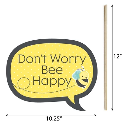 10-Piece Funny Honey Bee Photo Booth Props Kit INCLUDES 10 Bee arrow and speech bubble photo booth props, 10 sticks and adhesives for assembly. EASY ASSEMBLY: Simply attach the printed DIY photo booth props to the sticks with included adhesive and reinforcing stickers. PERFECT FOR ANY CROWD! Photo booth props are fun baby shower or birthday party supplies for adults and kids – everyone will love the funny sayings on these Honey Bee photo booth props. Take entertaining and shareable party photos while making memories with these funny photo booth props! BABY SHOWER OR BIRTHDAY DECORATIONS: Many fun ways to use these cute photo booth props! Use as intended and take party photos to share; Add them to vases and floral arrangements as a fun honey bee baby shower or birthday centerpiece; Accent your bee baby shower or birthday candy buffet by displaying them in apothecary candy jars; Adhere as direction arrows to walls and your guests to the bee baby shower or birthday party! HIGH-QUALITY: Honey Bee photo booth props are professionally printed on thick cardstock paper. They will arrive cut out and ready to assemble with the included sticks and adhesives. MADE IN THE USA: Funny Honey Bee Birthday Party or Baby Shower Photo Booth Props Kit is designed and manufactured at our Wisconsin facility using materials that are Made in the USA.