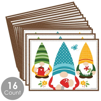 Garden Gnomes Placemats INCLUDE: 16 paper placemats. Placemats will arrive flat and party ready! EASY CLEAN UP: Garden Gnomes paper placemats SIZE 15.5 inches wide x 11.5 high. Made of sturdy cardstock paper, these disposable placemats will make it easy to clean up after the party is over. Party placemats are perfect for at-home dining tables or to bring to your favorite restaurant as an easy decoration. PARTY TABLE DECORATIONS: Placemats are a fun and easy party table decoration for a Garden Gnomes forest gnome party. Use Garden Gnomes party placemats to style dining tables, buffet tables, banquet halls, and more! Garden Gnomes party table decoration placemats will make a statement however you choose to use them. PAPER PLACEMATS: Set of 16 Garden Gnomes placemats are professionally printed on sturdy cardstock paper. Each placemat is individually inspected and carefully packaged to arrive flat. MADE IN THE USA: Garden Gnomes paper party placemats are designed and manufactured at our Wisconsin facility using materials that are Made in the USA.