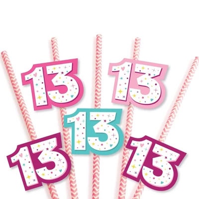Girl 13th Birthday Straw Decor INCLUDES 24 #13 paper cut outs, 24 coordinating paper straws & 21 clear stickers for easy assembly. Girl 13th Birthday DIY party supplies are perfect for thirteenth birthday party. #13 Straw Decor party kit SIZE 24 #13 paper die cuts (2.5″ X 2″) and 24 chevron striped paper straws 7.75″ tall. EASY PARTY DECORATIONS: Girl 13th Birthday straw decor will add a touch of charm to your birthday party tables. #13 bday straw decor will also look great at your beverage bar. Use these adorable fun birthday party accessories as straws or swizzle sticks. The paper straws can also be cut in half and used as cupcake picks once the shaped cut out is attached. PREMIUM PARTY SUPPLIES: Girl 13th Birthday paper cut out straw decorations are professionally printed on heavy-duty card stock paper with a photo-like shine. They are individually inspected and carefully packaged by hand, along with coordinating paper straws. Girl 13th Birthday Straw Decor will require some easy assembly. Simply adhere the shaped cut outs to the straws using the included clear stickers. Please Note: Mason Jars shown for display purposes and are not included.