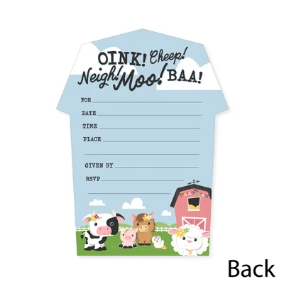 Girl Farm Animals Fill-In the Blank Invitation Set INCLUDES 12 Pink Barnyard party invitations and 12 premium white envelopes. Girl Farm Animals fill-in invitation is perfect for any event. The Pink Barnyard theme is great for a Baby Shower or Birthday Party. Pink Barnyard party invitations SIZE 5 inches by 7 inches. The included envelopes measure 5 inches by 7 inches. The back of each Girl Farm Animals Baby Shower or Birthday Party invitation has space to add your party details: For: Date: Time: Place: Given By: RSVP: PREMIUM PARTY INVITATIONS: Pink Barnyard party invitation is professionally printed on heavy-duty card stock paper with a photo-like shine. They are individually inspected, then carefully packaged with our exclusive squiggle flap envelopes, making this Girl Farm Animals stationery set a must-have for any Baby Shower or Birthday Party. MADE IN THE USA: Girl Farm Animals – Baby Shower or Birthday Party Invitations are designed and manufactured at our Wisconsin facility using materials that are Made in the USA.