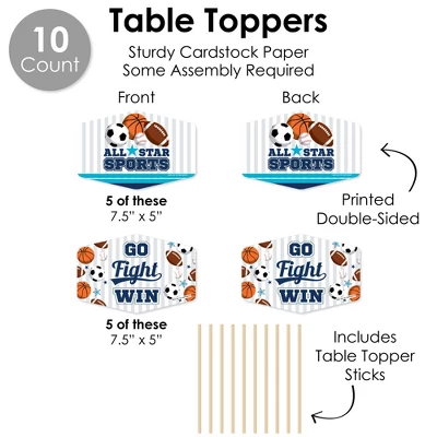 - Table Toppers Include 10 Total Centerpiece Sticks With 2 Designs – 5 Count Each, 10 Wooden Dowels, And Assembly Stickers