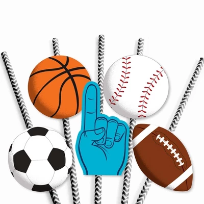 Go, Fight, Win – Sports Straw Decor INCLUDES 24 basketball, baseball, soccer, football and #1 fan hand paper cut outs, 24 coordinating paper straws & clear stickers for easy assembly. Go, Fight, Win – Sports DIY party supplies are perfect for a baby shower or birthday. Sports Straw Decor party kit SIZE 5 basketballs 2.2″ wide x 2.2″ tall; 5 baseballs 2.2″ wide x 2.2″ tall; 5 soccer balls 2.2″ wide x 2.2″ tall; 5 footballs 2″ wide x 2.25″ tall; 4 #1 fan hand 2″ wide x 3.5″ tall; and 24 chevron striped paper straws 7.75″ tall. EASY PARTY DECORATIONS: Go, Fight, Win – Sports straw decor will add a touch of charm to your baby shower or birthday party tables. Sports straw decor will also look great at your beverage bar. Use these adorable sports balls party accessories as straws or swizzle sticks. The paper straws can also be cut in half and used as cupcake picks once the shaped cut out is attached. PREMIUM PARTY SUPPLIES: Sports paper cut out straw decorations are professionally printed on heavy-duty cardstock paper with a photo-like shine. They are individually inspected and carefully packaged by hand, along with coordinating paper straws. Sports Straw Decor will require some easy assembly. Simply adhere the shaped cut outs to the straws using the included clear stickers. Get creative with your DIY baby shower or birthday party decoration ideas! Please Note: Mason Jars shown for display purposes and are not included.