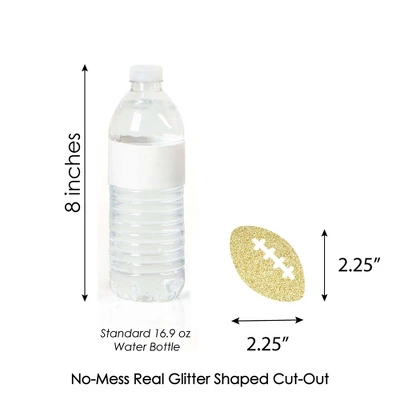 Gold Glitter Football Party Straws INCLUDES 24 no-mess real gold glitter cut-out shape Football, 24 black party straws and stickers. Party straw decor is ideal for a baby shower or birthday party. PERFECT PARTY DECORATIONS: Gold Glitter Football cut-out shapes come in a set of 24 MEASURE 2.25 inches x 2.25 inches, paper party straws MEASURE 7.75 inches tall. Real gold glitter number Football gold straw decor is cut from no-mess glitter paper, making them perfect beverage straw, drink marker, swizzle stick or food pick. EASY TO USE: No-mess shaped cut out glitter confetti easily attaches to the fun party straws with the included adhesive stickers. Gold Glitter Football Party Straws – No-Mess Real Gold Glitter Cut-Out & Decorative Paper Straws are quick to assemble for your baby shower or birthday party celebration. HIGH-QUALITY: Gold Glitter Football Cut-Out shapes are professionally cut from heavy-duty, cardstock glitter paper. They are then inspected for quality while being carefully hand-packed in sets of 24 along with 24 striped paper straws. Gold glitter Football shape confetti uses NO-MESS Real Gold Glitter Paper with white reverse side, eliminating glitter flake while maximizing bling effect! Please Note: Glasses shown for display purposes and are not included.