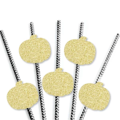 Gold Glitter Pumpkin Party Straws INCLUDES 24 no-mess real gold glitter cut-out shape Pumpkin, 24 black and white party straws and stickers. Party straw decor is ideal for a fall or Thanksgiving. PERFECT PARTY DECORATIONS: Gold Glitter Pumpkin cut-out shapes come in a set of 24 MEASURE 2.25 inches x 2 inches, paper party straws MEASURE 7.75 inches tall. Real gold glitter Pumpkin straw decor is cut from no-mess glitter paper, making them perfect beverage straw, drink marker, swizzle stick or food pick. EASY TO USE: No-mess shaped cut out glitter confetti easily attaches to the fun party straws with the included adhesive stickers. Gold Glitter Pumpkin Party Straws – No-Mess Real Gold Glitter Cut-Out & Decorative Paper Straws are quick to assemble for your fall or Thanksgiving celebration. HIGH-QUALITY: Gold Glitter Pumpkin Cut-Out shapes are professionally cut from heavy-duty, cardstock glitter paper. They are then inspected for quality while being carefully hand-packed in sets of 24 along with 24 striped paper straws. Gold glitter Pumpkin shape confetti uses NO-MESS Real Gold Glitter Paper with white reverse side, eliminating glitter flake while maximizing bling effect! Please Note: Glasses shown for display purposes and are not included.