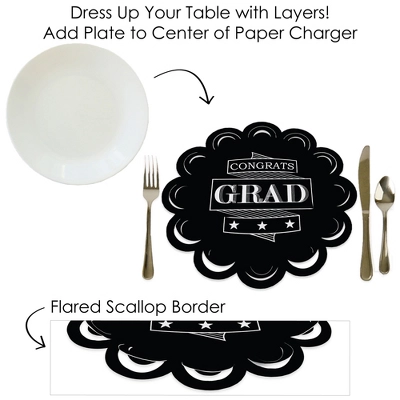 Graduation Cheers Paper Chargers INCLUDES set of 12 reversible round table decorations. Create an exciting look at your Graduation party when you use paper chargers to elevate your table setting and accent your dinnerware. Tablescape Accent: Graduation Cheers chargers will add a festive flare to your tablescape. Whether it’s a large feast gathering or a close-knit gathering with the family, paper chargers will add a splash of color and are a great alternative to paper doilies. Easy Decor: Dress up your table with layers! Add a plate to the center of paper chargers. Black and White Themed paper charger is an easy solution for your table setting decor and perfect for complementing your tableware. The scallop border can be flared up for an elevated look and the backside can be used for an alternate look. High-Quality Supply: Graduation Cheers Paper Chargers are professionally printed double-sided on sturdy cardstock paper with a photo-like shine. Paper chargers measure 11.25″ in diameter and are the perfect final touch to complete your Graduation party. Made In The USA: Graduation Cheers Paper Chargers are designed and manufactured at our Wisconsin facility using materials that are Made in the USA.