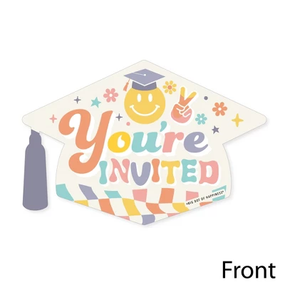 Groovy Grad Fill-In the Blank Invitation Set INCLUDES 12 Hippie Graduation party invitations and 12 premium white envelopes. Groovy Grad fill-in invitation is perfect for any event. The Hippie theme is great for a Graduation Party. Hippie Graduation party invitations SIZE 5 inches by 7 inches. The included envelopes measure 5 inches by 7 inches. The back of each Groovy Graduation Party invitation has space to add your party details: For: Date: Time: Place: Given By: RSVP: PREMIUM PARTY INVITATIONS: Hippie Graduation party invitation is professionally printed on heavy-duty card stock paper with a photo-like shine. They are individually inspected, then carefully packaged with our exclusive squiggle flap envelopes, making this Groovy Grad stationery set a must-have for any Graduation Party. MADE IN THE USA: Groovy Grad – Hippie Graduation Party Invitations are designed and manufactured at our Wisconsin facility using materials that are Made in the USA.