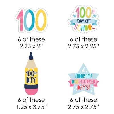Happy 100th Day of School Straw Decor INCLUDES 24 pineapple paper cut outs, 24 coordinating paper straws & 40 clear stickers for easy assembly. Happy 100th Day of School DIY party supplies are perfect for a 100 days party. First 100 Days of School Straw Decor party kit SIZE 6 – 100 paper die cuts (2.75″ X 2″), 6 – 100th Day of School paper die cuts (2.75″ X 2.25″); 6 pencil paper die cuts (1.25″ X 3.75″); 6 Hooray! One Hundred Days! Paper die cuts (2.75″ X 2.75″) and 24 chevron striped paper straws 7.75″ tall. EASY PARTY DECORATIONS: Happy 100th Day of School straw decor will add a touch of style to your 100 days party tables. School straw decor will also look great at your beverage bar. Use these adorable school accessories as straws or swizzle sticks. The paper straws can also be cut in half and used as cupcake picks once the shaped cut out is attached. PREMIUM PARTY SUPPLIES: Happy 100th Day of School paper cut out straw decorations are professionally printed on heavy-duty card stock paper with a photo-like shine. They are individually inspected and carefully packaged by hand, along with coordinating paper straws. Happy 100th Day of School Straw Decor will require some easy assembly. Simply adhere the shaped cut outs to the straws using the included clear stickers. Get creative with your DIY 100 days party decoration ideas! Please Note: Mason Jars shown for display purposes and are not included.