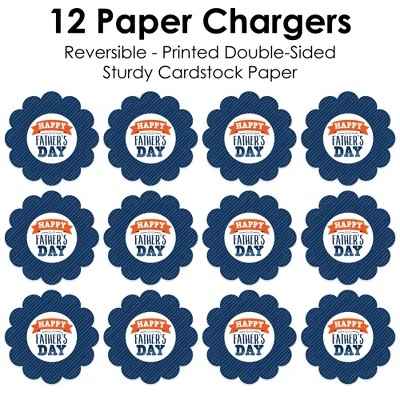 Happy Father’s Day Paper Chargers INCLUDES set of 12 reversible round table decorations. Create an exciting look at your We Love Dad party when you use paper chargers to elevate your table setting and accent your dinnerware. Tablescape Accent: Happy Father’s Day chargers will add a festive flare to your tablescape. Whether it’s a large feast gathering or a close-knit gathering with the family, paper chargers will add a splash of color and are a great alternative to paper doilies. Easy Decor: Dress up your table with layers! Add a plate to the center of paper chargers. Dad paper charger is an easy solution for your table setting decor and perfect for complementing your tableware. The scallop border can be flared up for an elevated look and the backside can be used for an alternate look. High-Quality Supply: Happy Father’s Day Paper Chargers are professionally printed double-sided on sturdy cardstock paper with a photo-like shine. Paper chargers measure 11.25″ in diameter and are the perfect final touch to complete your We Love Dad party. Made In The USA: Happy Father’s Day Paper Chargers are designed and manufactured at our Wisconsin facility using materials that are Made in the USA.