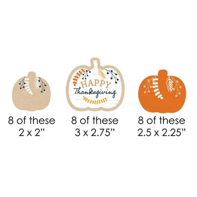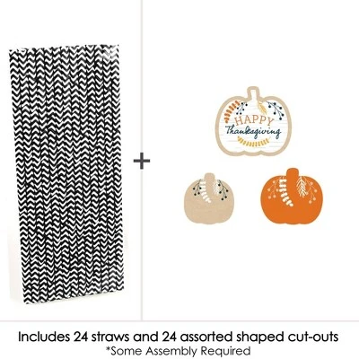 Happy Thanksgiving Straw Decor INCLUDES 24 pumpkin paper cut outs, 24 coordinating paper straws & 40 clear stickers for easy assembly. Happy Thanksgiving DIY party supplies are perfect for a fall harvest event. Pumpkin Straw Decor party kit SIZE 8 “Happy Thanksgiving” Pumpkin paper die cuts (3β x 2.75β), 8 Kraft Pumpkin paper die cuts (2β X 2β), 8 Orange Pumpkin paper die cuts (2.5β x 2.25β), and 24 chevron striped paper straws 7.75″ tall. EASY PARTY DECORATIONS: Happy Thanksgiving straw decor will add a touch of charm to your fall harvest tables. Happy Thanksgiving straw decor will also look great at your beverage bar. Use these adorable pumpkin party accessories as straws or swizzle sticks. The paper straws can also be cut in half and used as cupcake picks once the shaped cut out is attached. PREMIUM PARTY SUPPLIES: Happy Thanksgiving paper cut out straw decorations are professionally printed on heavy-duty card stock paper with a photo-like shine. They are individually inspected and carefully packaged by hand, along with coordinating paper straws. Pumpkin Straw Decor will require some easy assembly. Simply adhere the shaped cut outs to the straws using the included clear stickers. Get creative with your DIY fall harvest decoration ideas! Please Note: Mason Jars shown for display purposes and are not included.