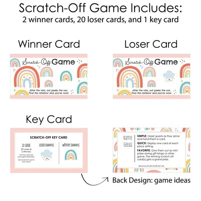 Boho Rainbow Scratch-Off Cards INCLUDES 22 Baby Shower or Birthday Party game cards: 20 “loser” cards and 2 “winner” cards. FUN PARTY GAME: Hello Rainbow scratch-off cards will be enjoyed by Baby Shower or Birthday Party guests of all ages. Each game card measures 2.75″ tall x 4.75″ wide. Winner and loser game cards are packaged separately so it is easy to pre-select the game winners if you choose. 3 WAYS TO PLAY: Simple – Greet guests as they arrive and hand them a scratch-off card. Quick – Display one scratch-off card at each place setting and have guests play before eating. Favorite – Give scratch-off cards out as mini prizes during other party games. The winning scratch off card(s) gets a grand prize. HIGH-QUALITY PARTY SUPPLIES: Boho Rainbow Scratch-Off Cards are professionally printed on heavy-duty cardstock paper with a photo-like shine. They are individually inspected and carefully packaged by hand, with winner cards and loser cards clearly marked. This fun Baby Shower or Birthday Party game will arrive ready to use at your party. MADE IN THE USA: Hello Rainbow – Baby Shower or Birthday Party Game Scratch Off Cards are designed and manufactured at our Wisconsin facility using materials that are Made in the USA.