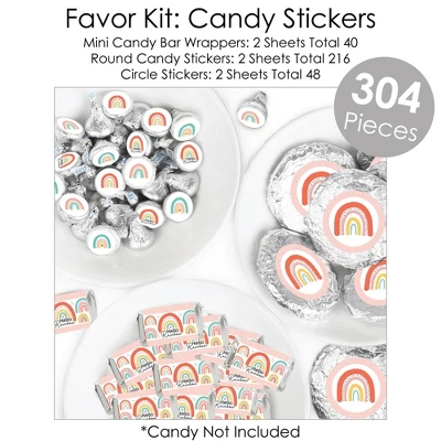 - Favor Kit: Candy Stickers – Includes Mini Candy Bar Wrappers, Round Candy Stickers, and Circle Stickers
