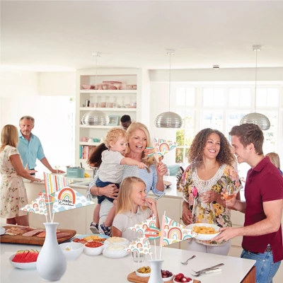 Big Dot of Happiness Hello Rainbow Pennant Flag Centerpieces include a set of 20 paper triangle flags, 10 paper tassel shapes, paper sticks, and adhesive dots. Pennant centerpieces will help create an impressive look at your Baby Shower or Birthday Party. Party Decor: Make a statement with the Boho table decorations at your celebration. Insert them into vases or floral arrangements and place them at the center of your tablescape. They are the perfect way to accent your tables and are also a great addition to any photo booth. Easy DIY: Hello Rainbow flag decorations come with sticks and adhesive dots for easy assembly. Simply insert a stick into the holes on the side of a pennant triangle and attach a paper tassel with an included adhesive dot. Then, begin arranging your centerpiece decorations! High-Quality Supply: Hello Rainbow flags are professionally printed double-sided on heavy-duty cardstock paper with a photo-like shine. Large pennants measure 8.5 inches wide by 7 inches tall, small pennants measure 6 inches wide by 5 inches tall, and paper tassels measure 3 inches wide by 4 inches tall. Assembled In The USA: Hello Rainbow Pennant Flag Centerpieces are designed and manufactured at our Wisconsin facility using materials that are Made in the USA – Sticks Made in China.