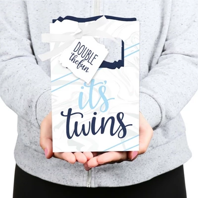 It’s Twin Boys – Blue Favor Boxes INCLUDES 12 twins party favor bags, 12 gift tags and coordinating satin ribbon. Classic favor boxes are a party must-have. Twin boys theme party supplies are great for a baby shower. It’s Twin Boys – Blue Party Favor Boxes SIZE 4.75 inches wide x 4.75 inches high x 2.25 inches deep (fillable inside space) with a total height of 7 inches, including the handle. The coordinating gift tags and ribbon makes these 12 blue party favor boxes a complete treat bag party kit that everyone will love. TWINS PARTY SUPPLIES: Baby shower favor boxes will hold a variety of treats, prizes and party favors for your guests. Fill them with baked goodies, party trinkets or thank you gifts for adorable It’s Twin Boys – Blue party favors! PREMIUM PARTY FAVOR BOXES: It’s Twin Boys – Blue party favor boxes are professionally printed on heavy-duty cardstock paper with a photo-like shine. They are hand-folded and individually inspected, then carefully packaged. Favor boxes will arrive flat, partially assembled. Finishing assembly is required but it is easy. Once assembled, add the It’s Twin Boys – Blue gift tag with the included ribbon for perfect party favors! MADE IN AMERICA: It’s Twin Boys – Blue – Baby Shower Favor Boxes are designed and manufactured at our Wisconsin facility.