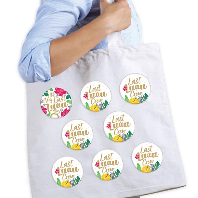 Last Luau Pinback Buttons INCLUDES 8 sturdy, round pinback buttons. Each set of 8 bridal buttons arrives assembled and ready for showing the world your special message. MESSAGES MADE-EASY: Last Luau Pinback Buttons are round-shaped, measuring 3 inches in diameter. Each set includes 1 It’s My Last Luau and 7 The Last Luau Crew, easy-to-wear buttons; perfect for making a statement! Pass out to your group at bachelorette parties, bridal showers, and special gatherings, or hand out individually. ORIGINAL BUTTON SET: These fully assembled buttons have a metal shell with an easy-open, straight metal clasp backer. You can pin easily onto any cloth-like materials such as canvas tote bags, jackets, shirts, backpacks, and hats! Designed to be trendy and stylish, this set of 8 full-color buttons will get all the attention. STURDY AND DURABLE: Last Luau Pinback Buttons are made with sturdy, metal backers and shells with a glossy finish. Buttons are reusable and can easily be cleaned as needed. MADE IN THE USA: Last Luau Pinback Buttons are designed and manufactured at our Wisconsin facility using materials that are Made in the USA.