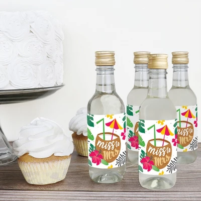 Last Luau Mini Wine and Champagne Bottle Labels INCLUDES Set of 16 Tiki Luau single-serve bottle sticker labels in the Last Luau theme, perfect for a Hawaiian Bachelorette Party favor gift. Mini wine and champagne bottle label each SIZE 3.75 inches wide x 2.6 inches tall to fit small, single-serve bottles. EASY TO USE: Prepare your beverage bottles by ensuring they are room temperature. Removing the original bottle label is not necessary. Carefully peel one adhesive Tiki Luau Mini Wine Bottle Label from the backing and adhere to a bottle, starting at the left edge and rolling to the opposite edge. Press down to smooth. HIGH QUALITY PARTY FAVORS: Last Luau mini wine and champagne bottle labels are professionally printed on a sticker paper with a glossy coating. They are waterproof and can be used on bottles that will be chilled, just be sure to apply prior to chilling. Add them single-serve bottles at each place setting for an impressive, coordinated Summer Bachelorette Party or Bridal Shower favor gift. UNIQUE GIFT IDEA: Last Luau Mini Wine Bottle Labels also make a great gift idea. Add Mini Wine and Champagne Bottle Label Stickers to a variety of single-serve wine and spirits bottles for a special gift or party game winner prize. Wine bottle labels will easily give your Tiki Bridal Shower a personal touch! MADE IN THE USA: Last Luau Mini Wine and Champagne Bottle Label Stickers are made at our Wisconsin facility using materials that are Made in the USA. Please Note: Mini bottles in image are not included.